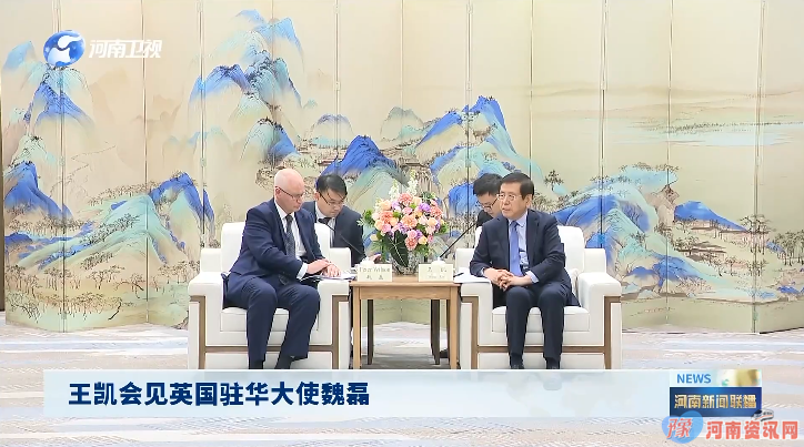 王凯欢迎魏磊一行来豫考察。他说,河南地处中原腹地,是中华民族和中华文明的重要发祥地,历史悠久、文化厚重,区位优越、交通便利,产业体系完备,发展态势良好。当前,全省上下正认真落实党的二十届四中全会和中央经济工作会议精神,深入学习贯彻习近平总书记在河南考察时重要讲话精神,聚焦“1+2+4+N”目标任务体系,主动融入服务全国统一大市场建设,进一步全面深化改革,扩大高水平对外开放,推动经济实现质的有效提升和量的合理增长,确保“十四五”圆满收官、“十五五”良好开局,奋力谱写中原大地推进中国式现代化新篇章。河南高度重视与英国的交流交往,近年来双方在贸易往来、产业对接、人文交流等领域合作取得积极成果。希望双方共同落实好中英两国领导人达成的重要共识,深化新兴产业、绿色能源、人才培养、医疗健康等领域合作,加强文化、旅游、教育、体育等方面交流互动,推动互惠合作向更高水平、更深层次迈进,为共同书写中英关系健康稳定发展的下一个篇章贡献力量。