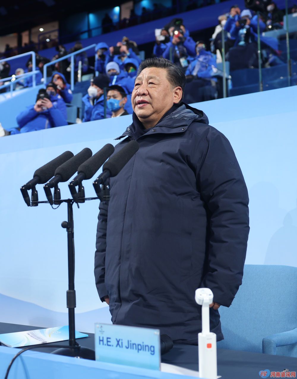 2022年2月4日晚,北京第二十四届冬季奥林匹克运动会开幕式在国家体育场隆重举行。国家主席习近平出席开幕式并宣布本届冬奥会开幕。新华社记者 鞠鹏 摄