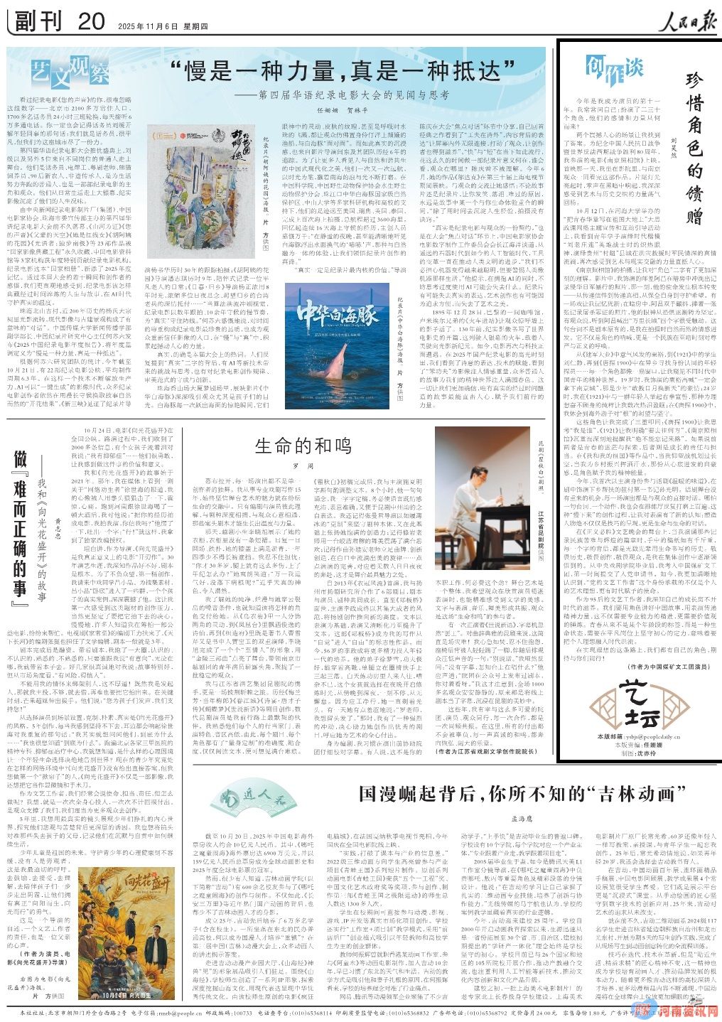 11月6日,《人民日报》副刊版刊发河南籍演员刘昊然的署名文章《珍惜角色的馈赠》。